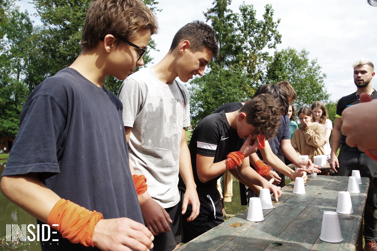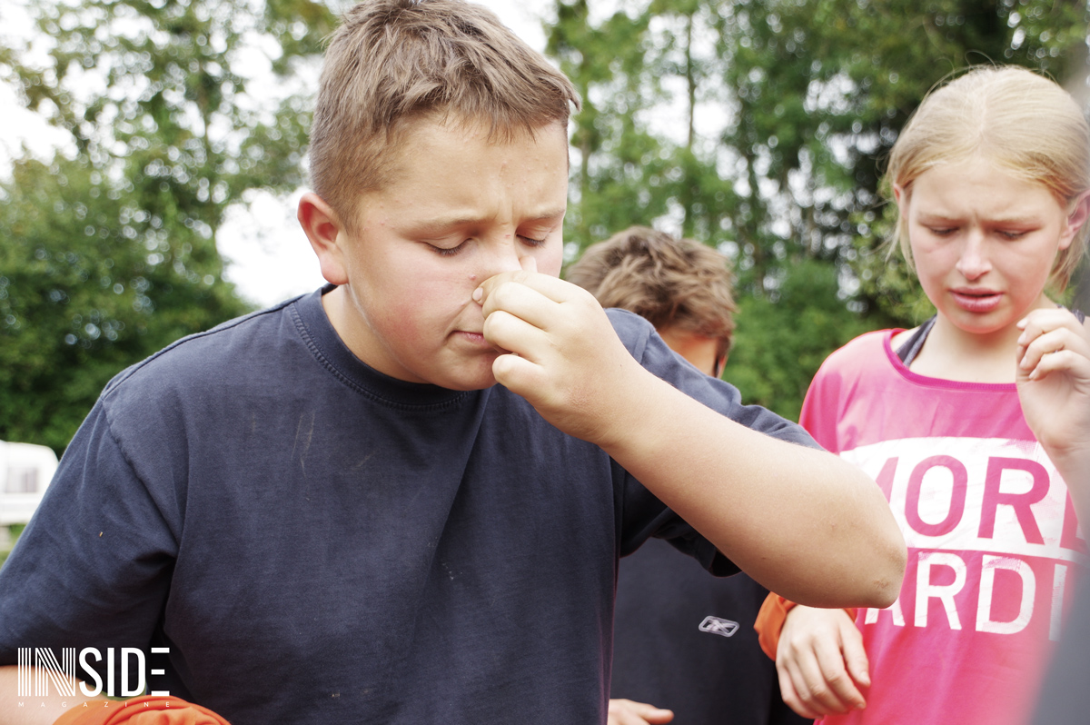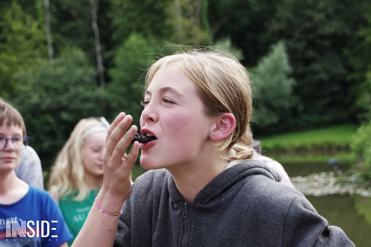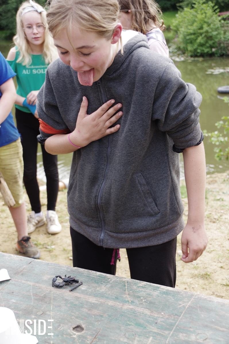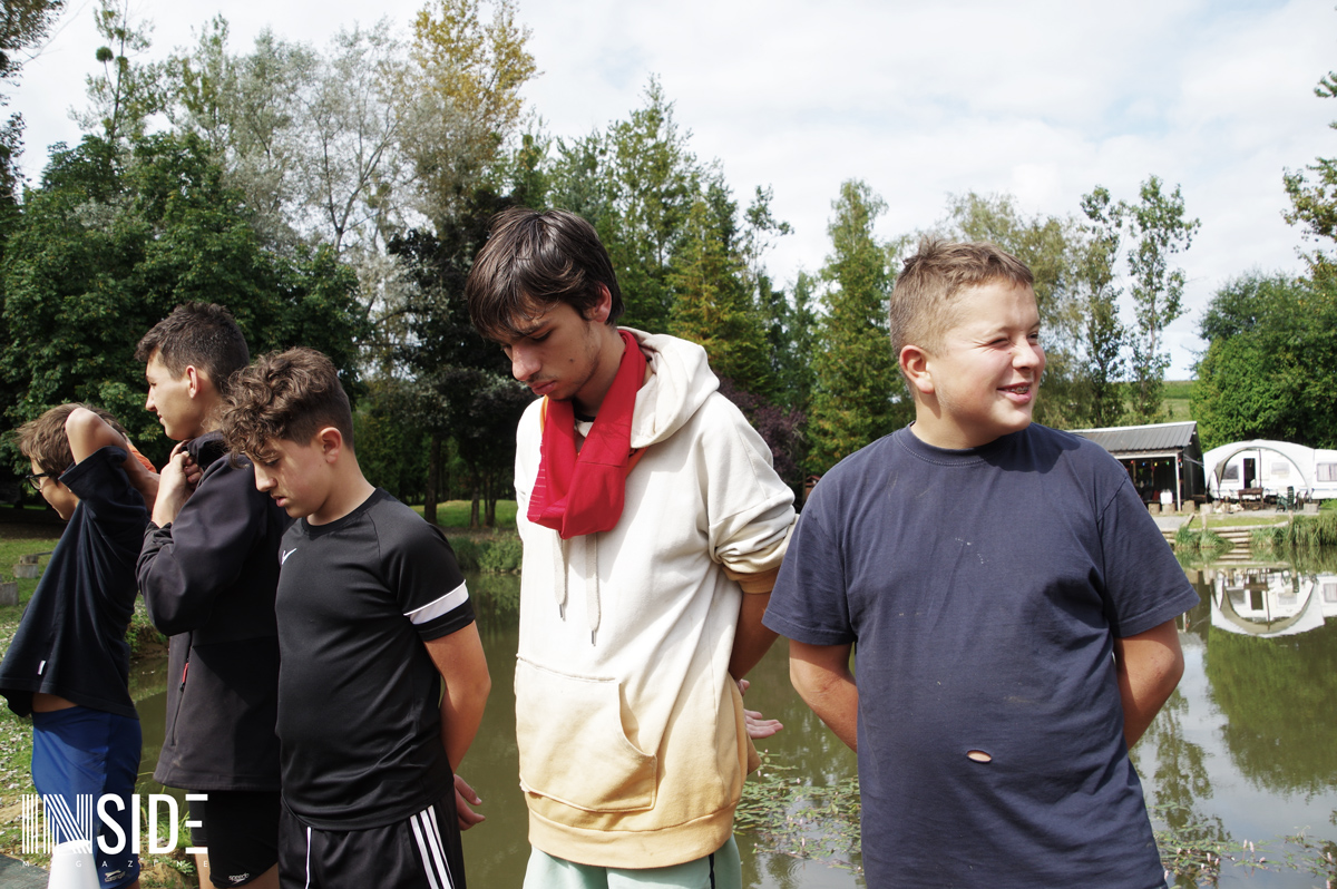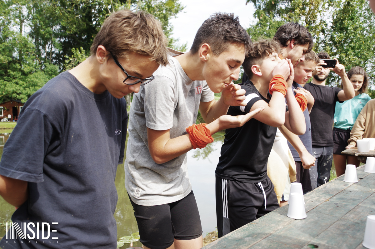 Les similitudes avec l’émission éponyme ne s’arrêtent pas là ! Les enfants dorment sur place à même le sol (sur de la paille), en tente avec les animateurs. C’est eux qui aménagent leur campement et cuisinent le riz du matin et du midi qu’ils accompagnent avec du poisson pêché et des fruits (mirabelles, framboises, pommes & courges) trouver sur le site en remplacement du manioc et de la coco. Le soir, les repas sont plus conséquents pour s’assurer de leur forme. Bien entendu, des colliers sont cachés sur le camp : stratégies et effets de surprises sont donc possibles ! L’un des jeunes a d’ailleurs réussi à surprendre tout le monde et sauver sa place grâce à un collier.