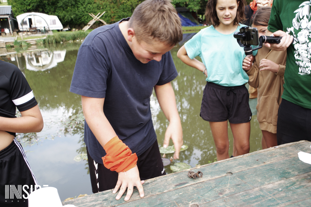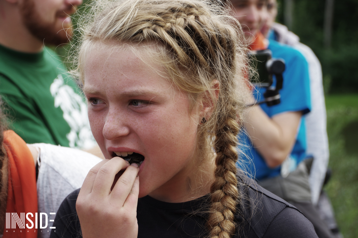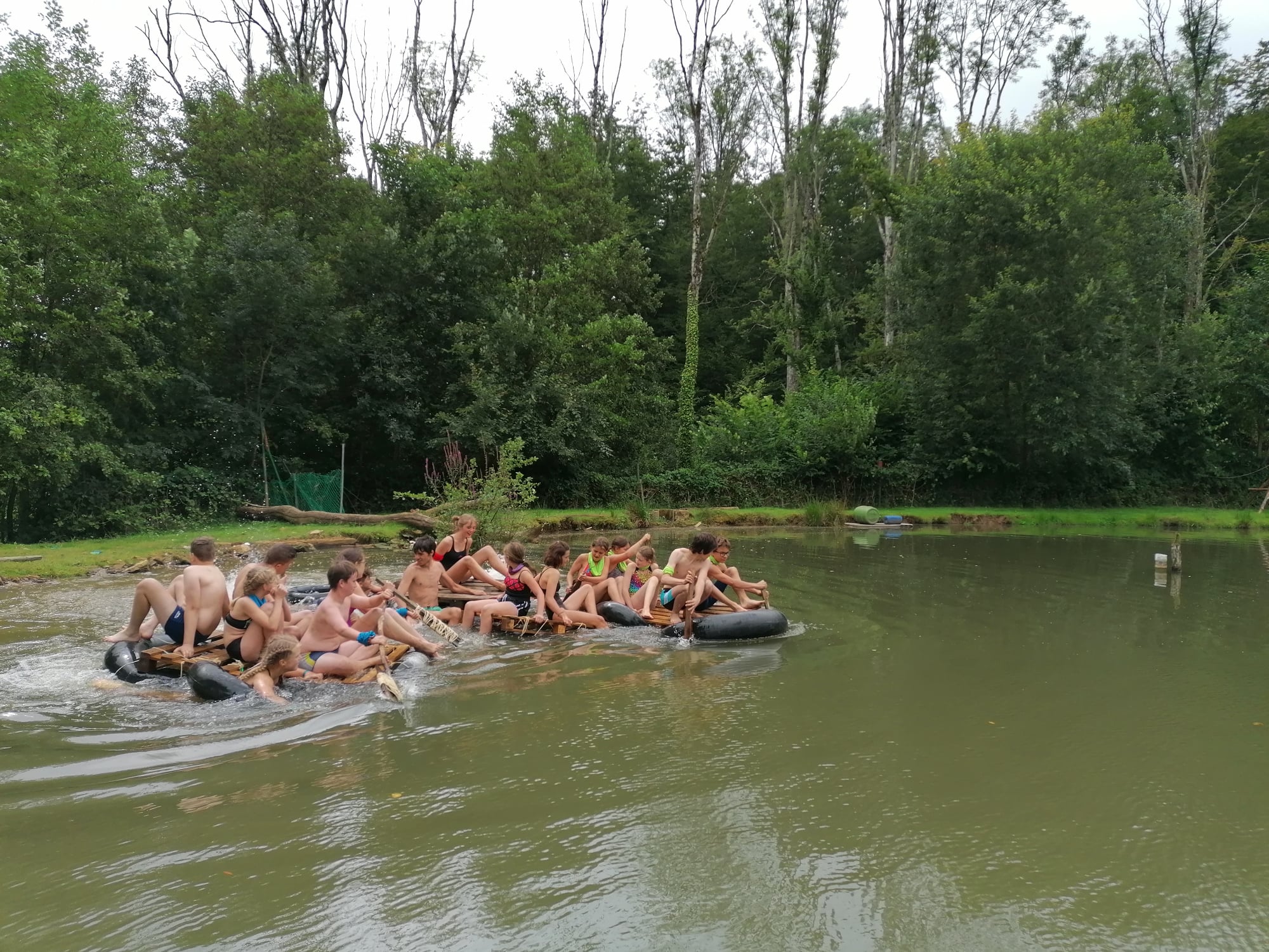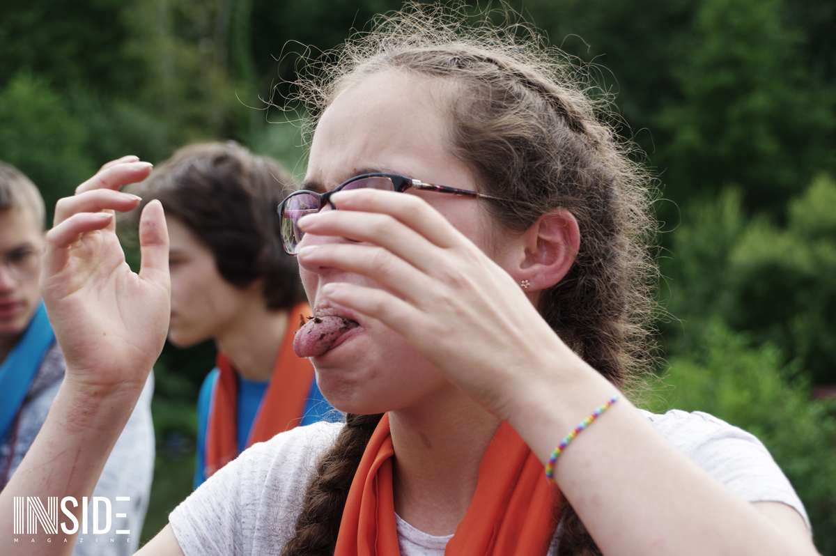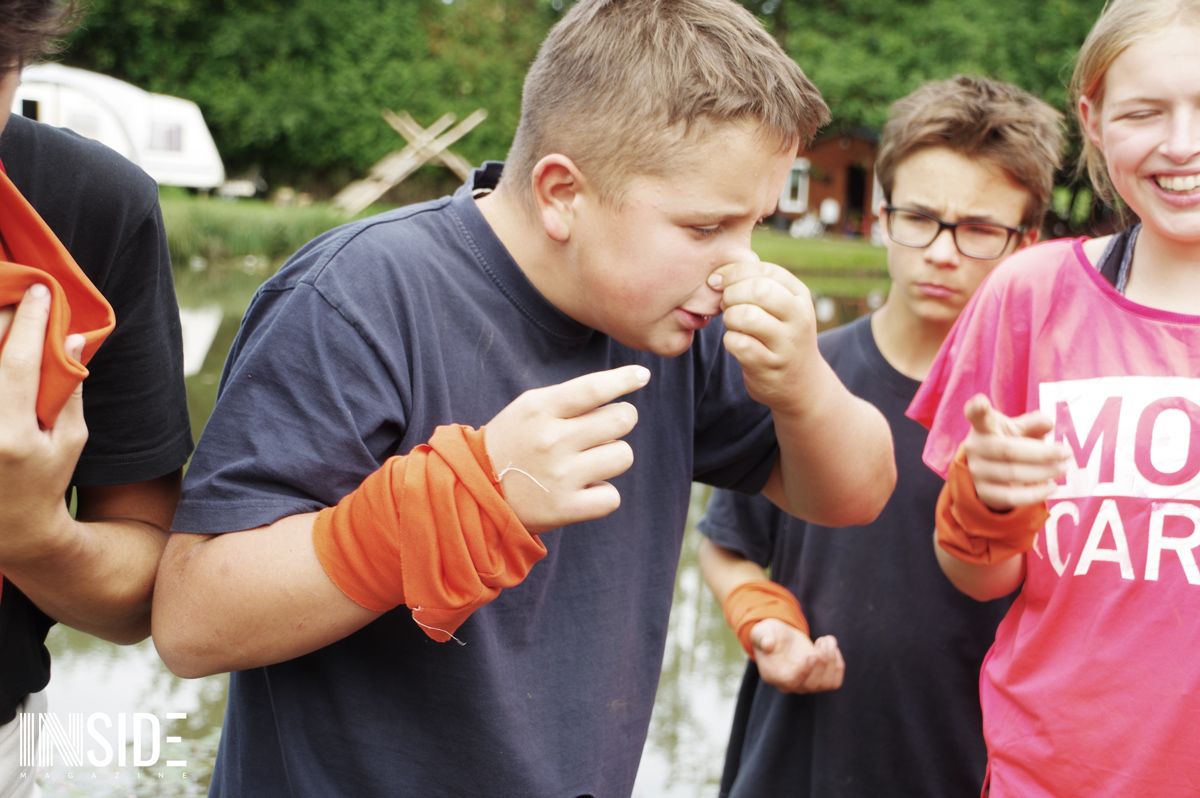 Les similitudes avec l’émission éponyme ne s’arrêtent pas là ! Les enfants dorment sur place à même le sol (sur de la paille), en tente avec les animateurs. C’est eux qui aménagent leur campement et cuisinent le riz du matin et du midi qu’ils accompagnent avec du poisson pêché et des fruits (mirabelles, framboises, pommes & courges) trouver sur le site en remplacement du manioc et de la coco. Le soir, les repas sont plus conséquents pour s’assurer de leur forme. Bien entendu, des colliers sont cachés sur le camp : stratégies et effets de surprises sont donc possibles ! L’un des jeunes a d’ailleurs réussi à surprendre tout le monde et sauver sa place grâce à un collier.