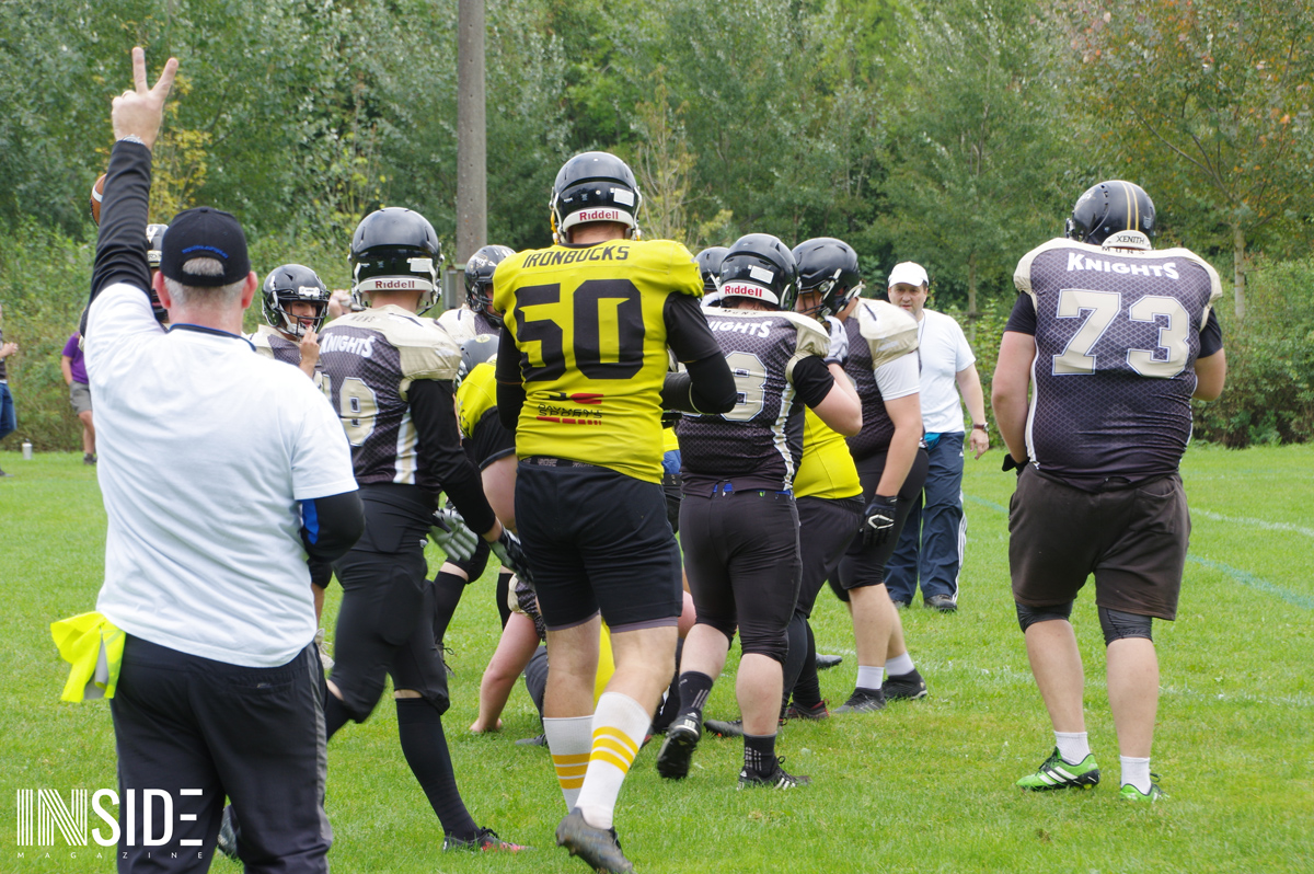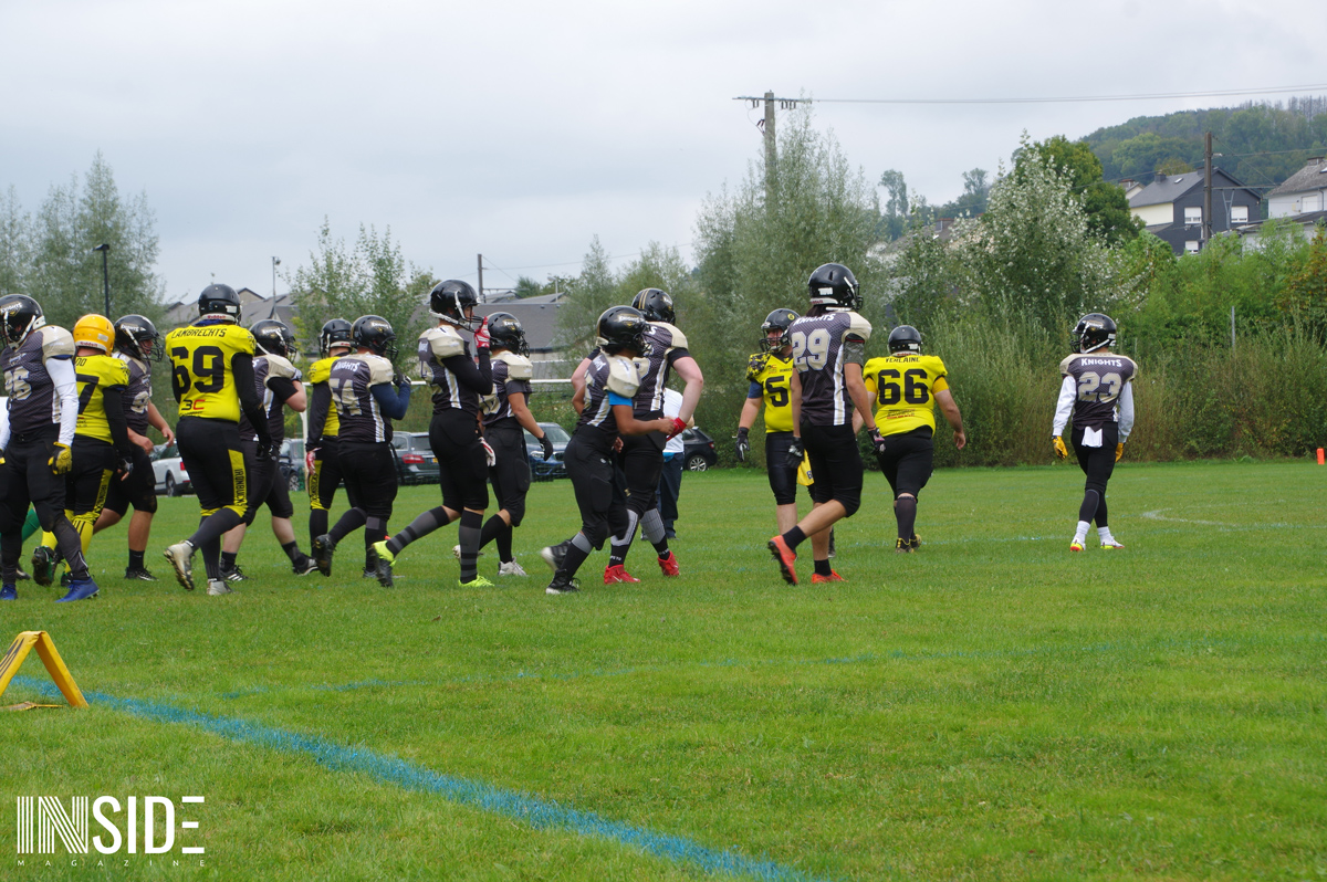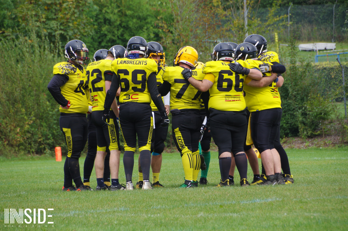 Le dimanche 26 septembre dernier se déroulait un match de football sur le terrain B de Messancy à la différence près qu’il s’agissait de football américain ! Les zèbres messancéens laissaient donc place aux Iron Bucks pour une première qui a attiré pas mal de monde. Le match qui les opposait aux Knights de Mons s’est soldé par une petite défaite 6-8, mais l’essentiel de l’après-midi était ailleurs et augure de belles promesses pour le futur de ce sport dans la province.