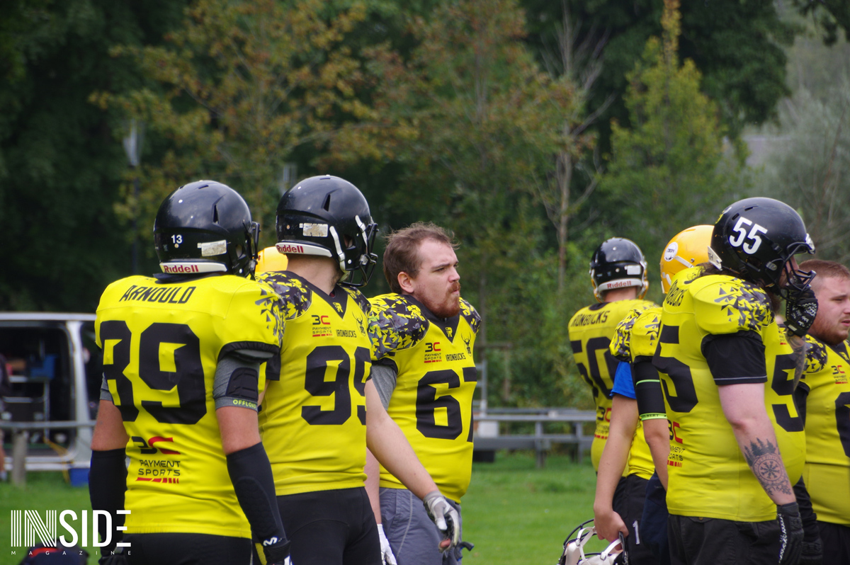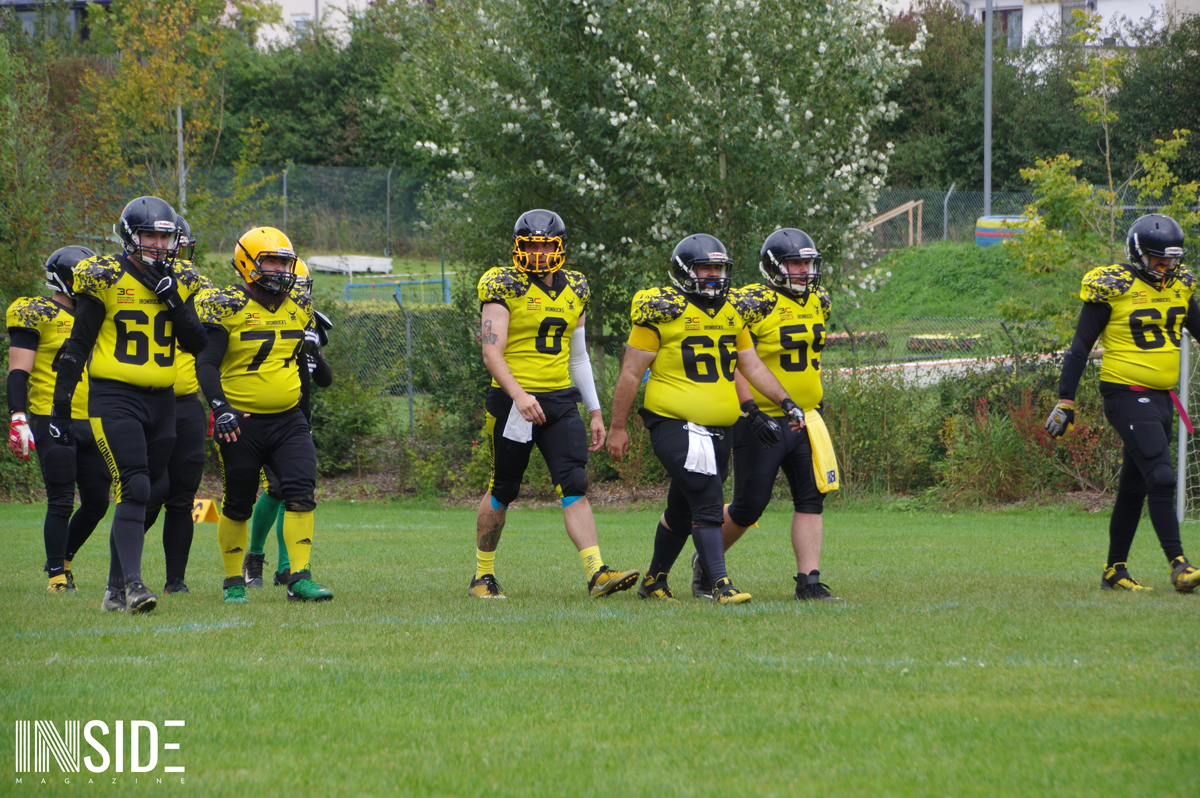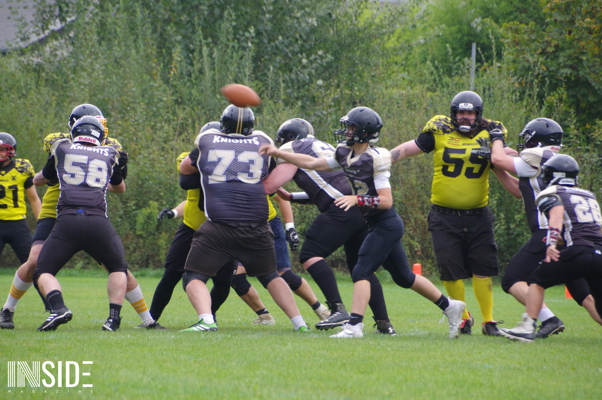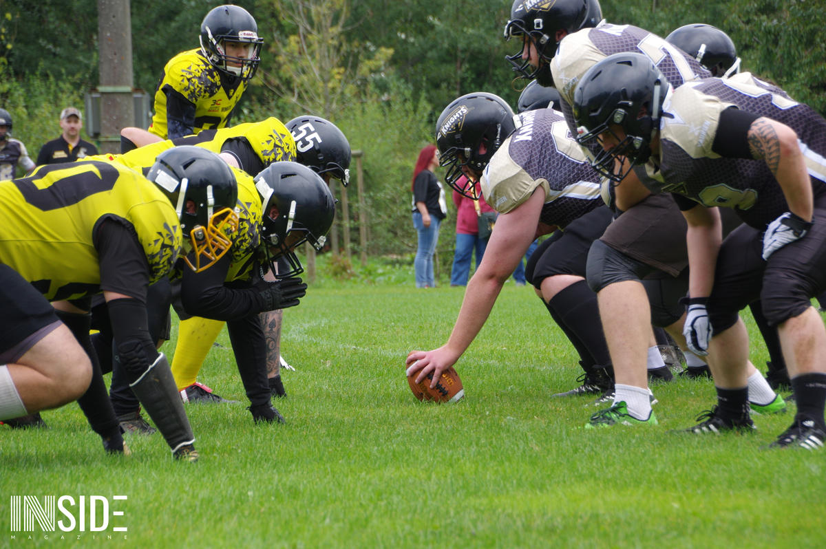 Le dimanche 26 septembre dernier se déroulait un match de football sur le terrain B de Messancy à la différence près qu’il s’agissait de football américain ! Les zèbres messancéens laissaient donc place aux Iron Bucks pour une première qui a attiré pas mal de monde. Le match qui les opposait aux Knights de Mons s’est soldé par une petite défaite 6-8, mais l’essentiel de l’après-midi était ailleurs et augure de belles promesses pour le futur de ce sport dans la province.