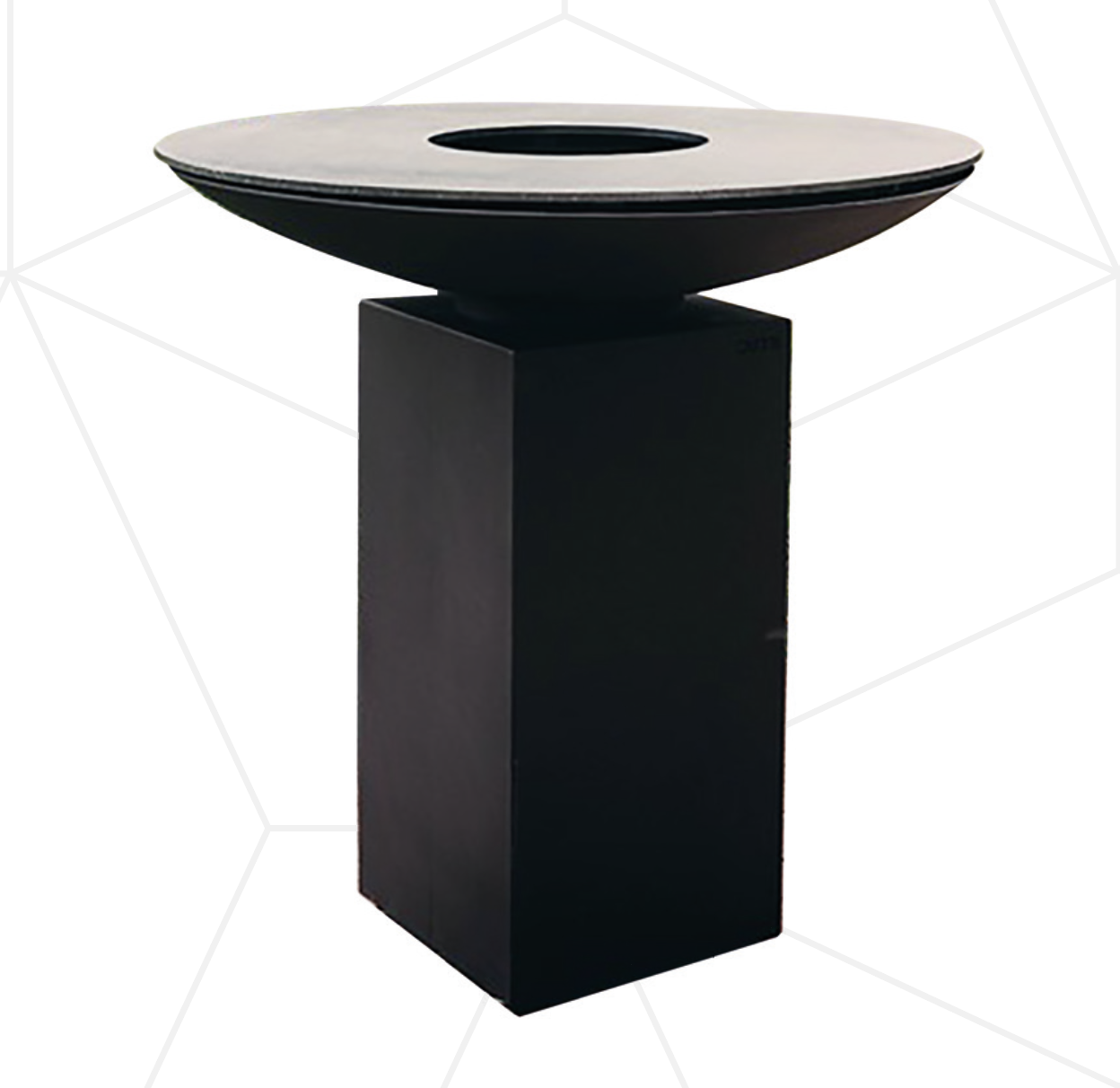 Plancha au bois de la marque OUTR. Disponible en acier coréen ou acier noir. Diamètre 80 ou 100 cm.