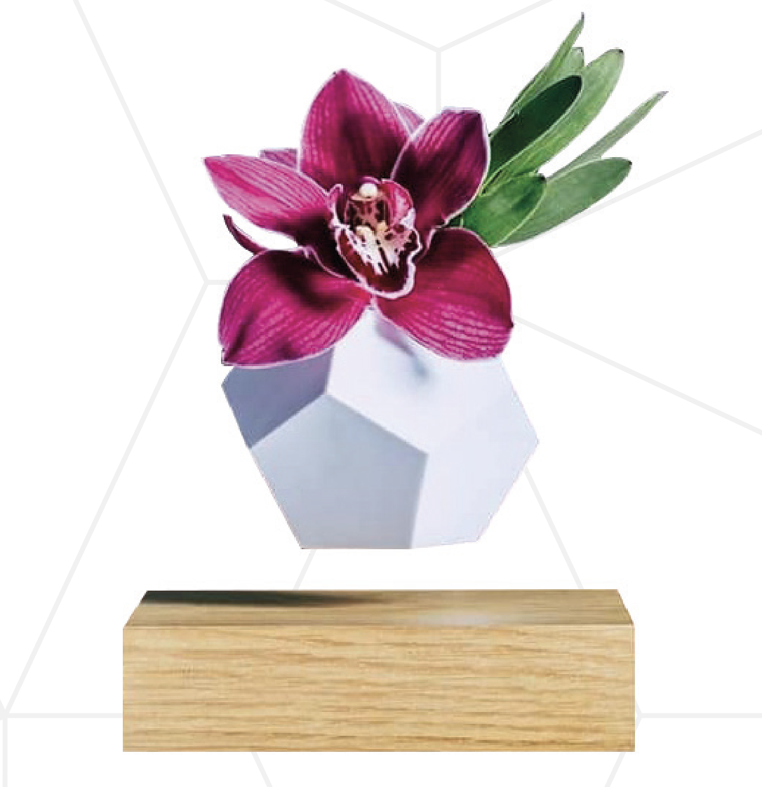 Une petite “jardinière” qui lévite au-dessus d’une base en chêne tournant sur elle-même. L’atout charme de votre intérieur.